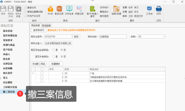 针对商标业务核心场景,新版本优化了撤三案件全流程管理: